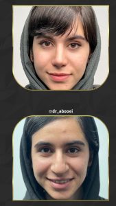 تصویری از قبل و بعد عمل بینی گوشتی در رفسنجان و برای زیباجو عزیز را مشاهده می کنید که توسط دکتر محسن ابویی به عنوان جراح بینی کرمان انجام شده است :